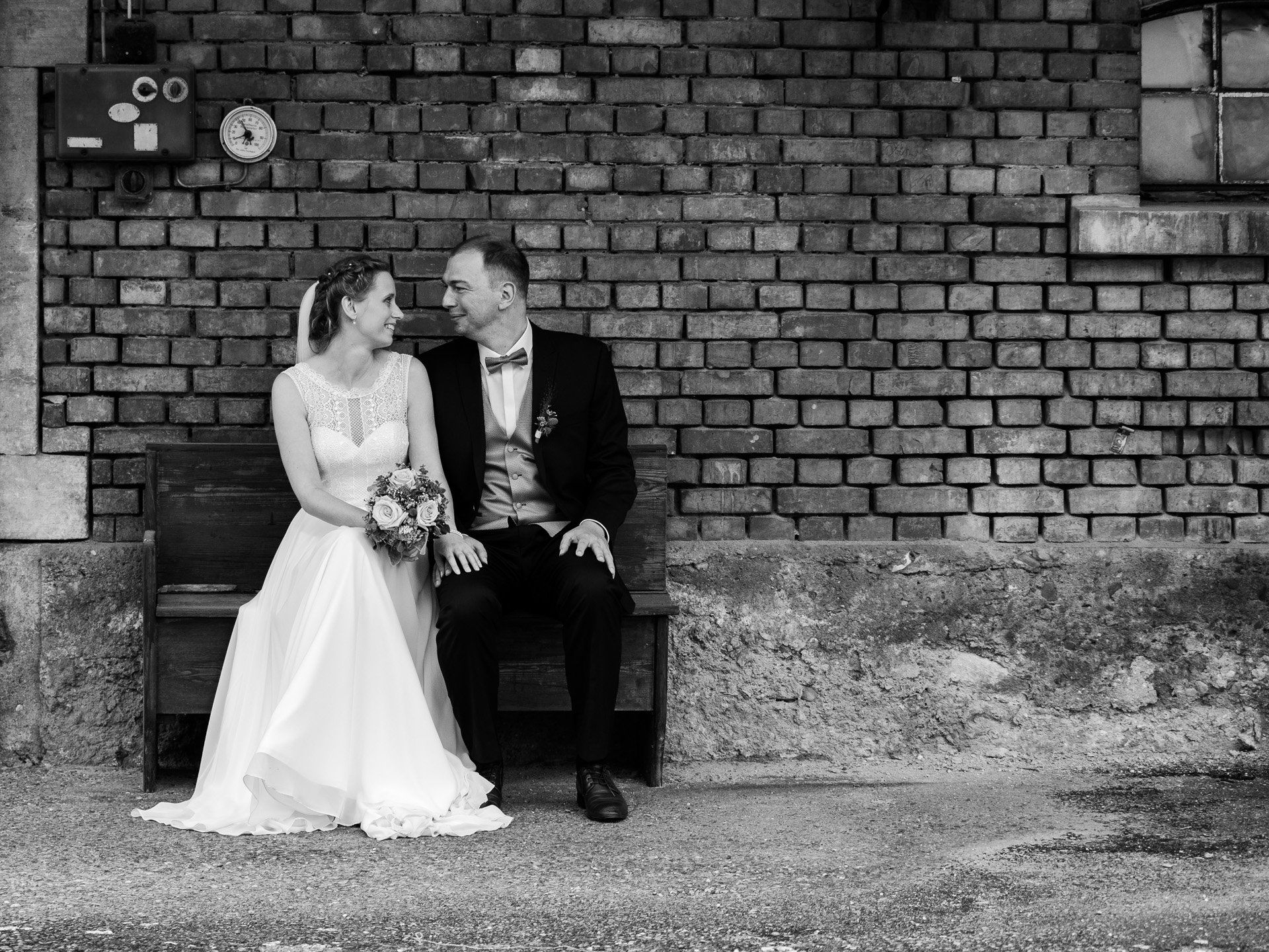 Spontanität ist wahrlich keine schwäbische Eigenschaft. Umso mehr habe ich mich gefreut, als ich - ganz super spontan - einen Anruf von Alexandra und Frank erhielt, mit der Bitte, die standesamtliche Trauung fotografisch zu begleiten. Und spontan ging es beim Brautpaar-Shooting dann auch gleich noch weiter, denn dank des wunderbar unbeständigen Wetters in diesem Sommer, mussten wir kurzerhand die Location wechseln. Trotz-(oder genau wegen)dem sind die Bilder so fantastisch geworden! Der heimliche Star der Ausweich-Locations wurde dann die "Scheuer" vor Omas Haus, mit wunderschönen Klinkern und alten, staubigen Geräte, schiefen Fenstern und zwei glücklichen, strahlenden Menschen davor.